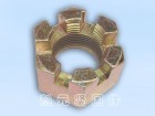 開槽螺母的作用就是通過緊固穿過前后輪輪軸螺桿固定車輛前后輪軸,使車架和輪胎固定在一起,為了防止螺母松脫,必須用開口銷通過開槽螺母的槽進行固定,而開口銷要固定住開槽螺母就必須從輪軸螺桿中間穿過,通常輪軸螺桿兩頭都需要鉆孔,孔的直徑大小和開槽螺母的槽寬和槽深決定了選用什么規格的開口銷,當選用 的輪軸螺桿和開口銷和開槽螺母都比較匹配的時候,螺母就通過輪軸螺桿固定住前 輪和車架,開口銷通過輪軸螺桿的孔緊固件住了開槽螺母,使開槽螺母不產生松脫, 使車輛在運動的時候也不松脫.